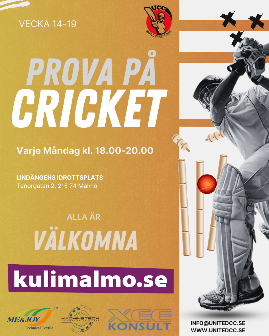 Plats: DR Cricket Center, Fosievägen 4, 214 31 Malmö
