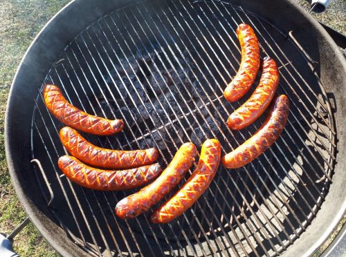 Vi bjuder på korv och dryck. Det finns kyckling eller vegetariskt alternativ